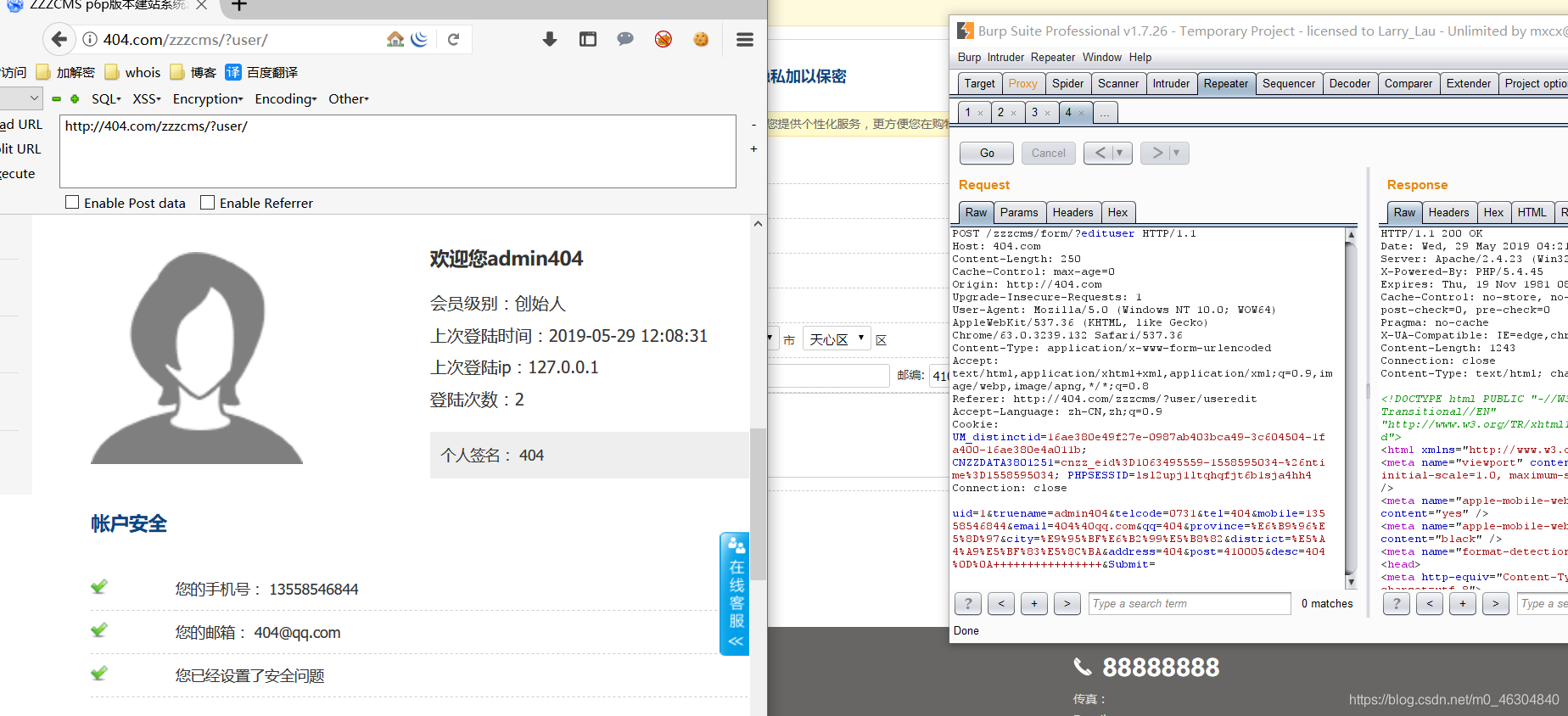 但是这里有一条验证$uid != get_session( 'uid' )and back( '很抱歉,资料修改失败' ); 所以没办法越权,为了演示我们可以删除了来看看。