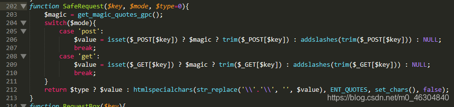我们看到$lyric经过 checkrename、 SafeRequest这两个函数的清洗,先来转到函数SafeRequest。